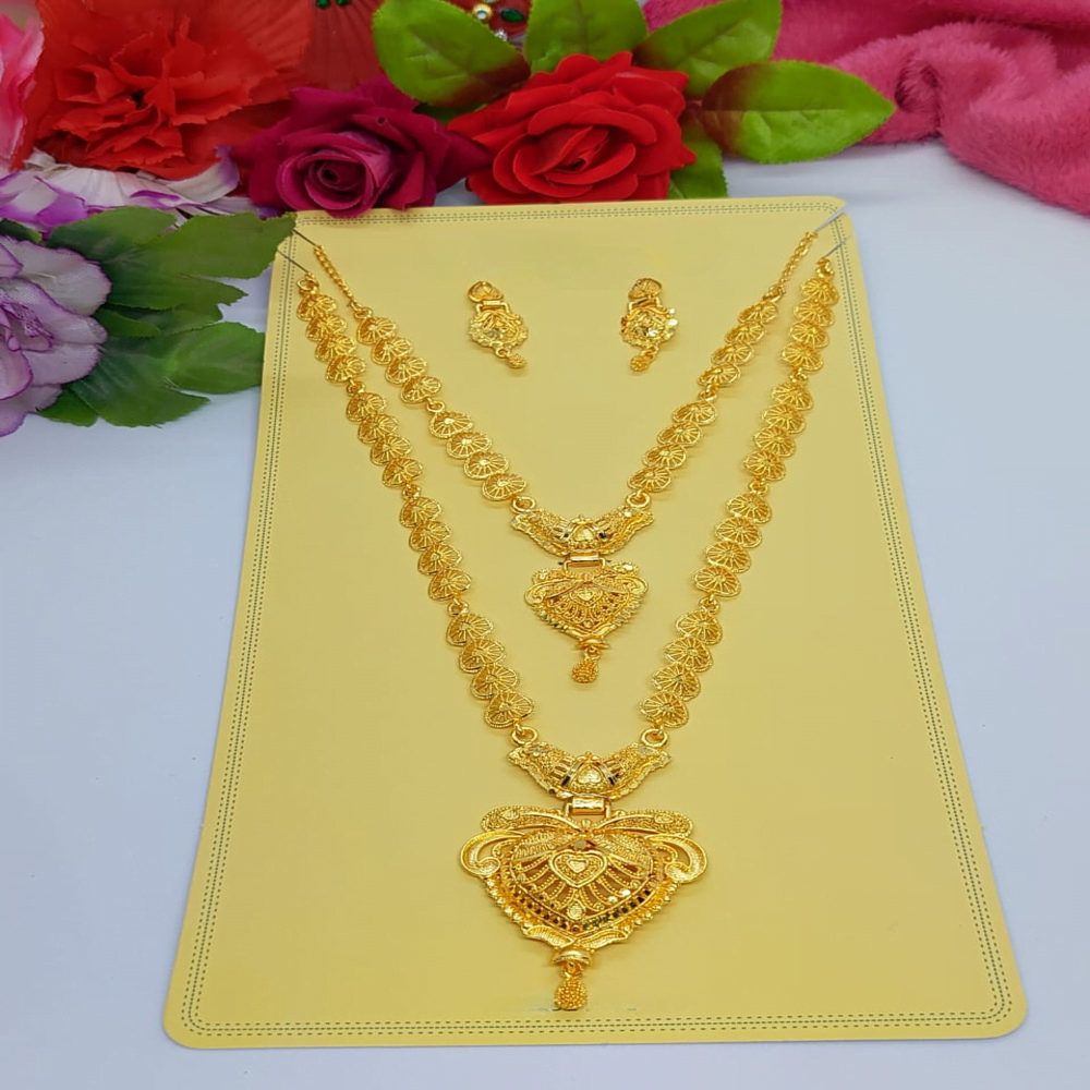 • Elegant Traditional Gold Plated Design: Discover the beauty of our Traditional Gold Plated Temple Jewellery Long Necklace Set with Earrings for Women. Featuring a stunning traditional design with intricate temple motifs, this jewellery set combines classic elegance with modern sophistication, perfect for enhancing any outfit.