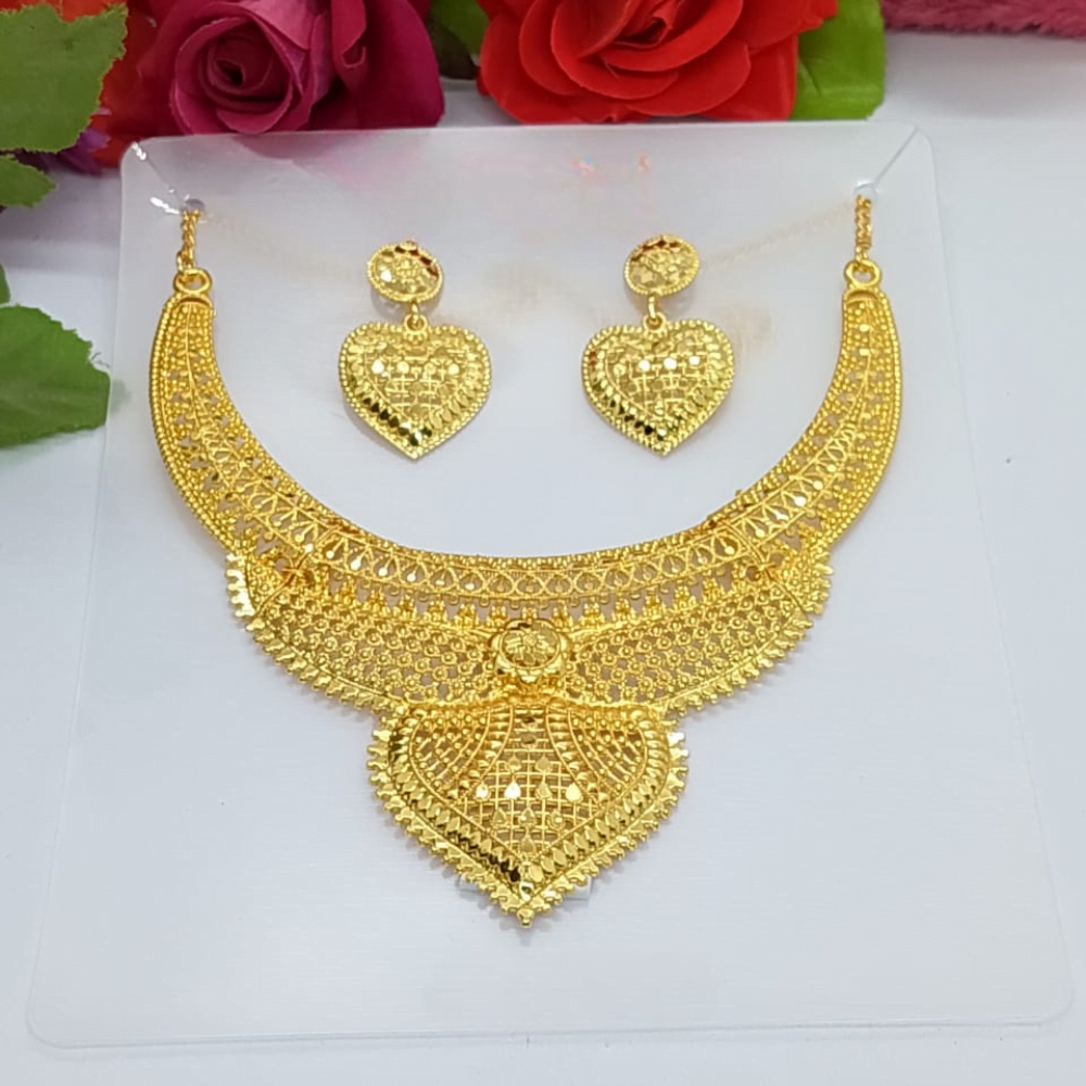 Traditional Gold-Plated Floral Shape Wedding Choker Jewellery Set with Earrings for Women